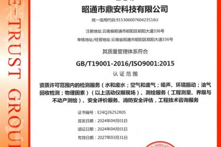 2003年11月10日,昭通市鼎安科技有限公司成立,初始主要從事第三方安全工程技術(shù)服務(wù),經(jīng)多年運(yùn)營(yíng),發(fā)展為多專業(yè)綜合科技平臺(tái),為社會(huì)提供多種專業(yè)技術(shù)服務(wù)工作。 現(xiàn)公司注冊(cè)資金為1200萬(wàn)元,公司法定代表人:毛衛(wèi)旭。公司主要業(yè)務(wù):安全評(píng)價(jià)、安全標(biāo)準(zhǔn)化評(píng)審、安全工程技術(shù)服務(wù);環(huán)境監(jiān)測(cè)、職業(yè)衛(wèi)生檢測(cè)、檢驗(yàn);法律訴訟及非訴訟服務(wù);司法鑒定、固定資產(chǎn)投資項(xiàng)目節(jié)能服務(wù);工程咨詢;工程測(cè)量測(cè)繪;安全教育培訓(xùn)等。是安全生產(chǎn)服務(wù)、安全教育培訓(xùn)機(jī)構(gòu),也是環(huán)境監(jiān)測(cè)和職業(yè)衛(wèi)生服務(wù)機(jī)構(gòu),同時(shí)也是綜合的檢測(cè)檢驗(yàn)、綜合科技平臺(tái)服務(wù)機(jī)構(gòu)。多年來為公、檢、法、司、軍、警、海關(guān)、仲裁、安監(jiān)、工礦商貿(mào)企業(yè)、社會(huì)團(tuán)體及個(gè)人提供多專業(yè)技術(shù)服務(wù)。